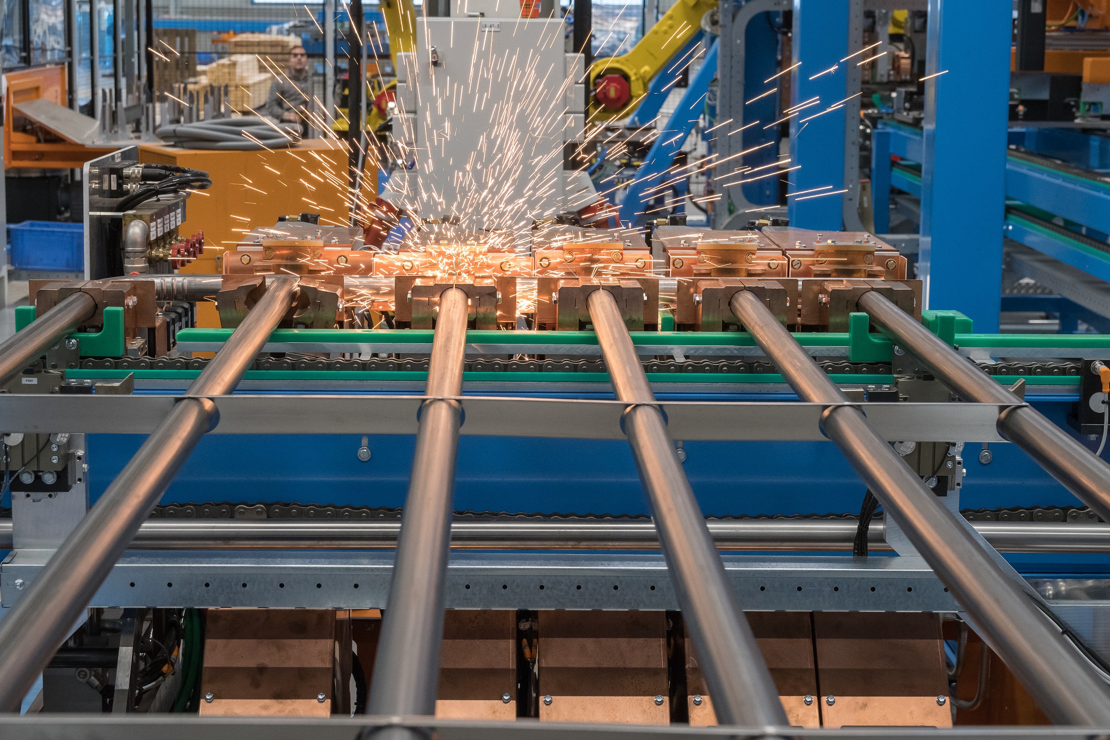 Lasmachine voor het volautomatisch lassen van elektriciteitskasten